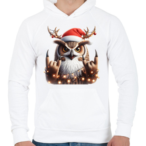 1 kép PRINTFASHION Vicces karácsonyi rocker party bagoly - Férfi kapucnis pulóver - Fehér