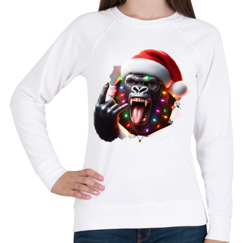 1 kép PRINTFASHION Vicces karácsonyi rocker party gorilla - Női pulóver - Fehér