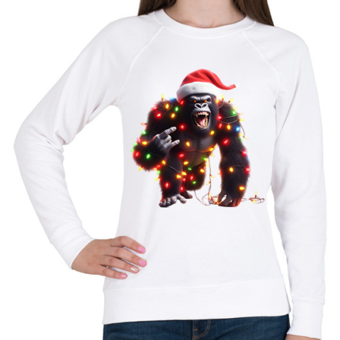 1 kép PRINTFASHION Vicces karácsonyi rocker party gorilla - Női pulóver - Fehér