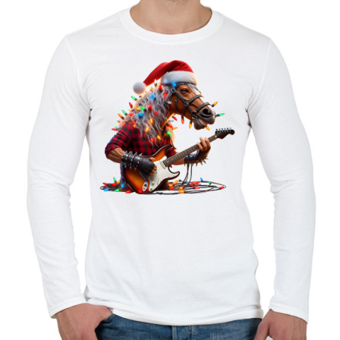 1 kép PRINTFASHION Vicces karácsonyi rocker party ló - Férfi hosszú ujjú póló - Fehér