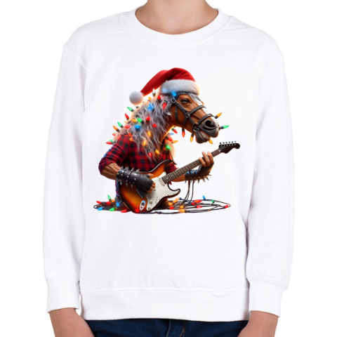 1 kép PRINTFASHION Vicces karácsonyi rocker party ló - Gyerek pulóver - Fehér