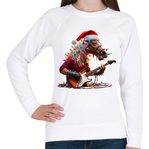 1 kép PRINTFASHION Vicces karácsonyi rocker party ló - Női pulóver - Fehér
