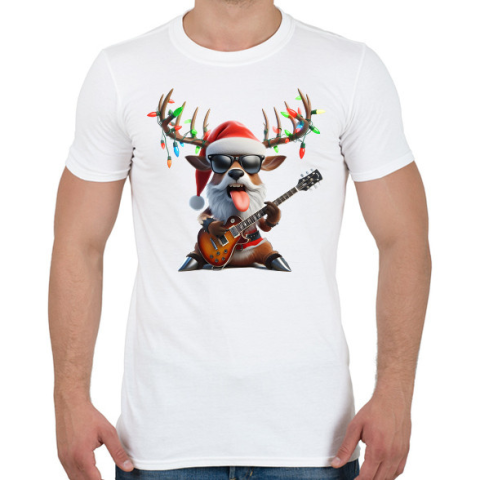 1 kép PRINTFASHION Vicces karácsonyi rocker party rénszarvas - Mikulás ruhában - Férfi póló - Fehér