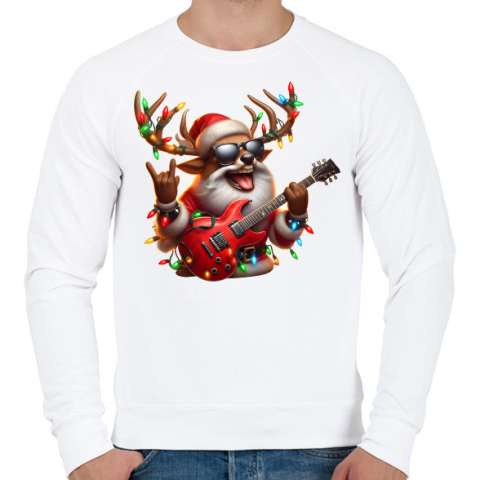 1 kép PRINTFASHION Vicces karácsonyi rocker party rénszarvas - Mikulás ruhában - Férfi pulóver - Fehér