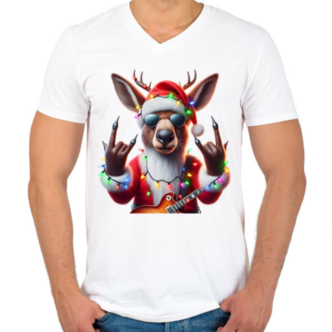 1 kép PRINTFASHION Vicces karácsonyi rocker party rénszarvas - Mikulás ruhában - Férfi V-nyakú póló - Fehér