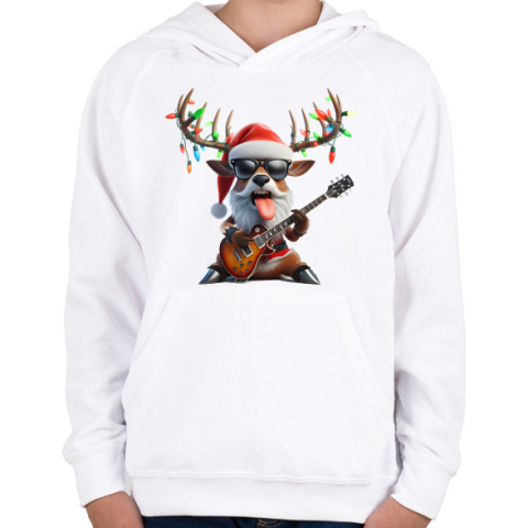 1 kép PRINTFASHION Vicces karácsonyi rocker party rénszarvas - Mikulás ruhában - Gyerek kapucnis pulóver - Fehér