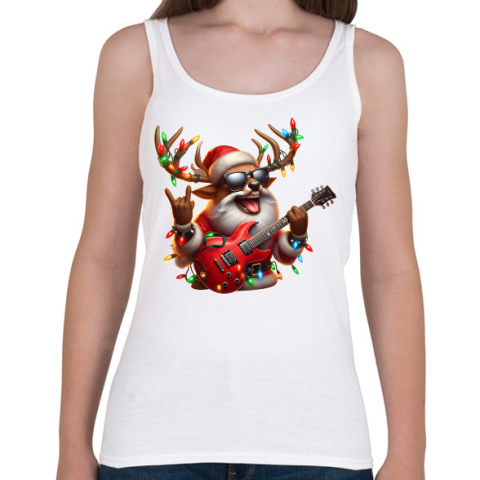 1 kép PRINTFASHION Vicces karácsonyi rocker party rénszarvas - Mikulás ruhában - Női atléta - Fehér