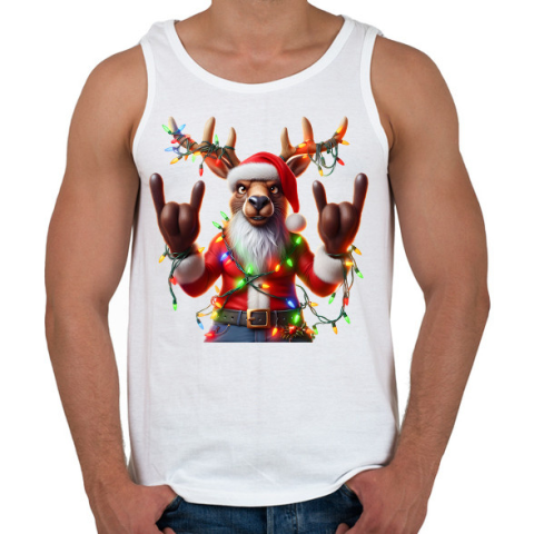 1 kép PRINTFASHION Vicces karácsonyi rocker party rénszarvas / szarvas - Mikulás ruhában - Férfi atléta - Fehér