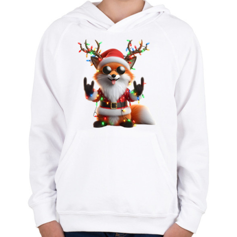 1 kép PRINTFASHION Vicces karácsonyi rocker party róka - télapó sapkában - Gyerek kapucnis pulóver - Fehér