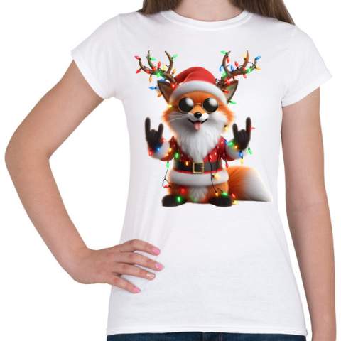 1 kép PRINTFASHION Vicces karácsonyi rocker party róka - télapó sapkában - Női póló - Fehér