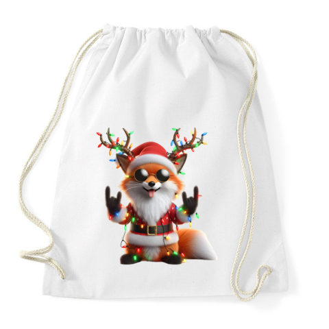 1 kép PRINTFASHION Vicces karácsonyi rocker party róka - télapó sapkában - Sportzsák, Tornazsák - Fehér