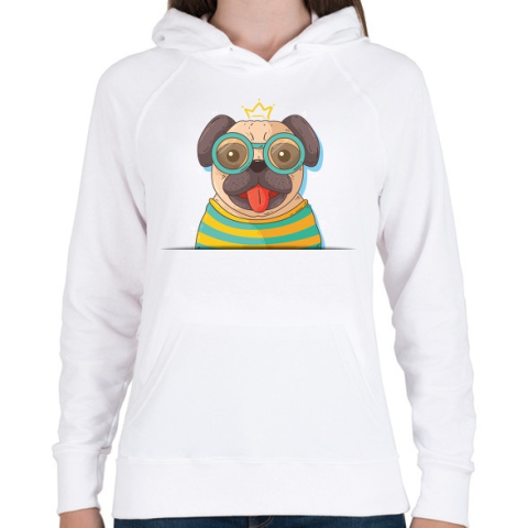 1 kép PRINTFASHION Vicces mopsz kutya - Női kapucnis pulóver - Fehér