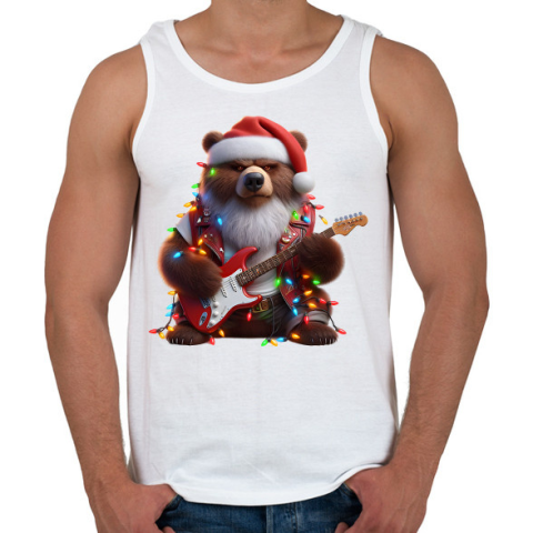 1 kép PRINTFASHION Vicces morcos karácsonyi gitáros rocker party medve - Férfi atléta - Fehér