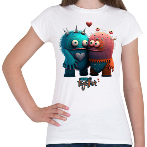 1 kép PRINTFASHION Vicces Szörnyecskés - BETTER together- cuki, csúnya, szerelmes minta - Női póló - Fehér