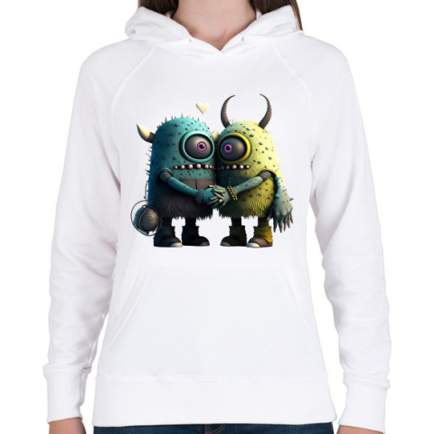 1 kép PRINTFASHION Vicces Szörnyecskés - cuki, csúnya, szerelmes minta - Női kapucnis pulóver - Fehér