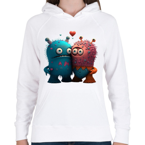 1 kép PRINTFASHION Vicces Szörnyecskés - cuki, csúnya, szerelmes minta - Női kapucnis pulóver - Fehér