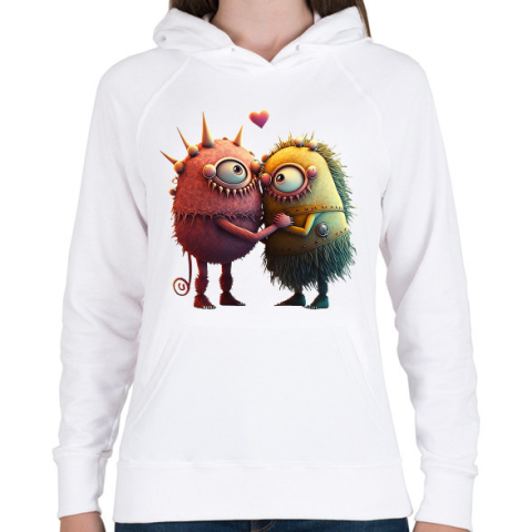 1 kép PRINTFASHION Vicces Szörnyecskés - cuki, csúnya, szerelmes minta - Női kapucnis pulóver - Fehér