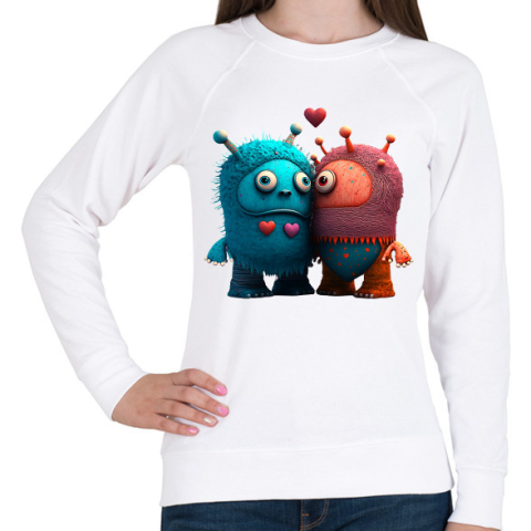 1 kép PRINTFASHION Vicces Szörnyecskés - cuki, csúnya, szerelmes minta - Női pulóver - Fehér