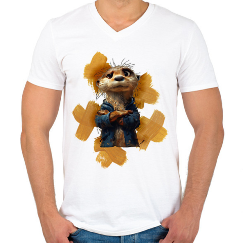 1 kép PRINTFASHION vidra - Férfi V-nyakú póló - Fehér