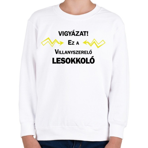 1 kép PRINTFASHION Vigyázat! Ez a villanyszerelő lesokkoló - Gyerek pulóver - Fehér