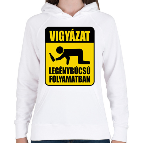 1 kép PRINTFASHION Vigyázat legénybúcsú folyamatban - Női kapucnis pulóver - Fehér