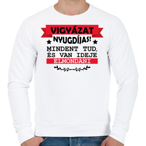 1 kép PRINTFASHION Vigyázat nyugdíjas - Férfi pulóver - Fehér