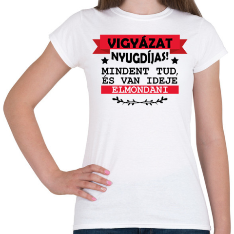 1 kép PRINTFASHION Vigyázat nyugdíjas - Női póló - Fehér
