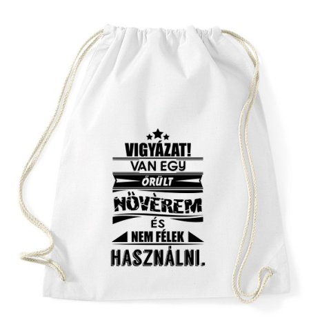 1 kép PRINTFASHION VIGYÁZAT! Van egy őrült nővérem és... - Sportzsák, Tornazsák - Fehér