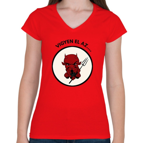 1 kép PRINTFASHION VIGYEN EL AZ ÖRDÖG - Női V-nyakú póló - Piros