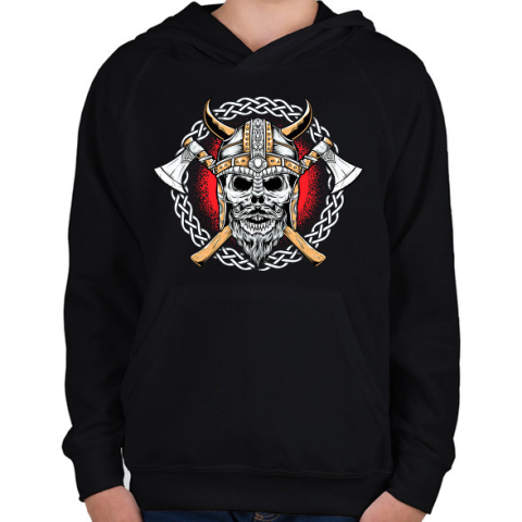 1 kép PRINTFASHION viking - Gyerek kapucnis pulóver - Fekete