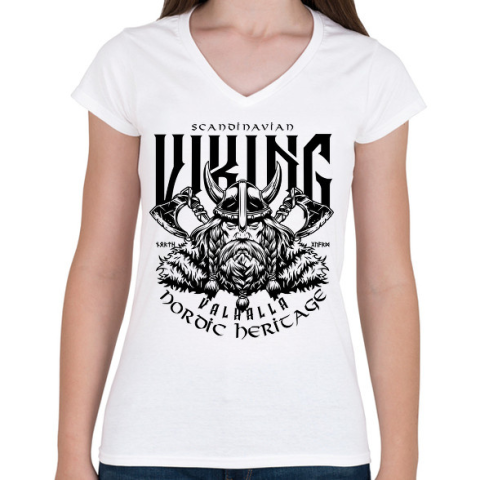 1 kép PRINTFASHION viking - Női V-nyakú póló - Fehér