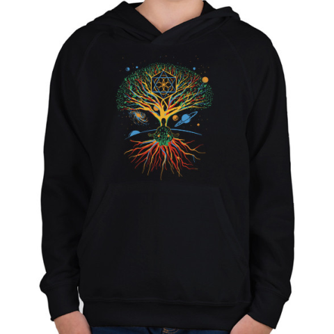 1 kép PRINTFASHION Világfa - Gyerek kapucnis pulóver - Fekete
