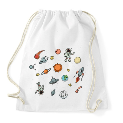 1 kép PRINTFASHION Világűr - űrhajós- rakéta - Sportzsák, Tornazsák - Fehér