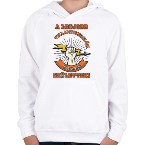 1 kép PRINTFASHION Villanyszerelő július - Gyerek kapucnis pulóver - Fehér