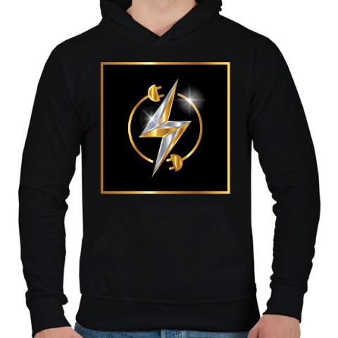 1 kép PRINTFASHION Villanyszerelő minta - Férfi kapucnis pulóver - Fekete