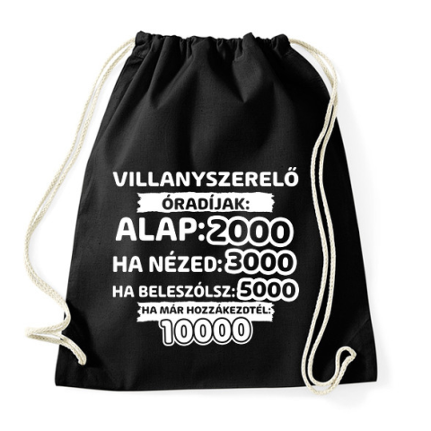 1 kép PRINTFASHION Villanyszerelő óradíjak - Sportzsák, Tornazsák - Fekete