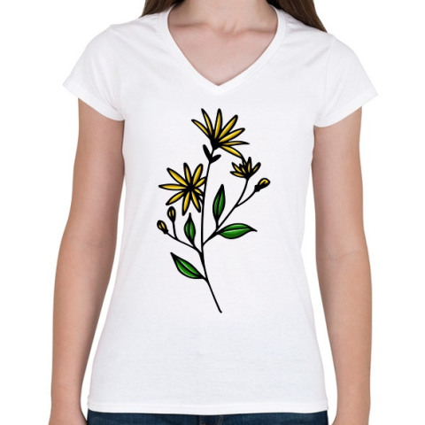 1 kép PRINTFASHION virág-007 - Női V-nyakú póló - Fehér