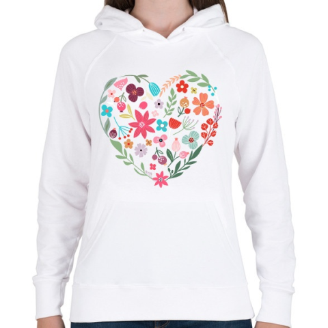 1 kép PRINTFASHION Virág szív - Női kapucnis pulóver - Fehér