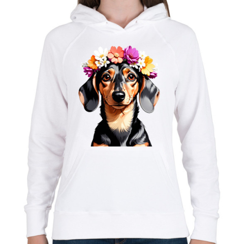 1 kép PRINTFASHION virágkoszorús tacsi - Női kapucnis pulóver - Fehér