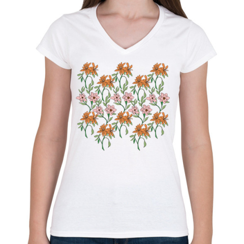 1 kép PRINTFASHION Virágok - Női V-nyakú póló - Fehér