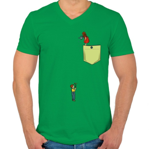 1 kép PRINTFASHION Virágöntözés - Férfi V-nyakú póló - Zöld