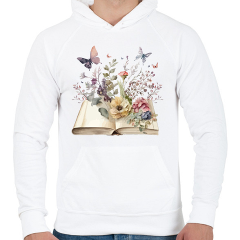 1 kép PRINTFASHION Virágos könyv - Férfi kapucnis pulóver - Fehér