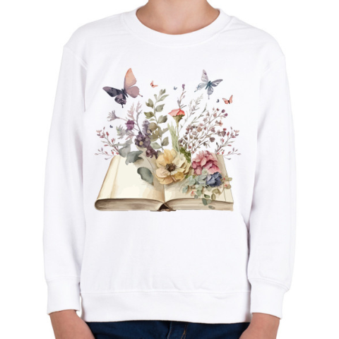 1 kép PRINTFASHION Virágos könyv - Gyerek pulóver - Fehér