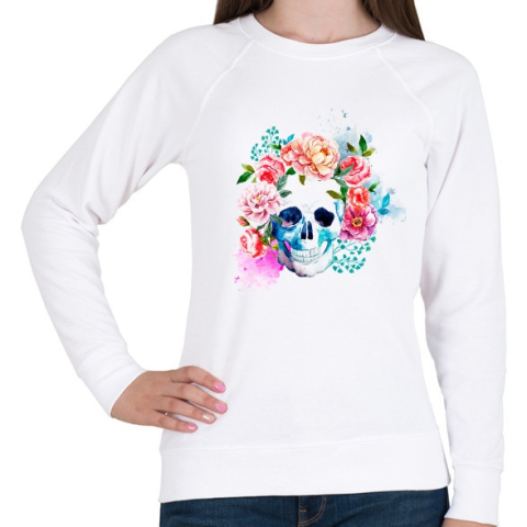 1 kép PRINTFASHION Virágos Koponya - Női pulóver - Fehér