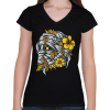 1 kép PRINTFASHION Virágos múmia - Női V-nyakú póló - Fekete
