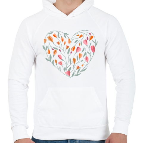 1 kép PRINTFASHION Virágos szív - Férfi kapucnis pulóver - Fehér