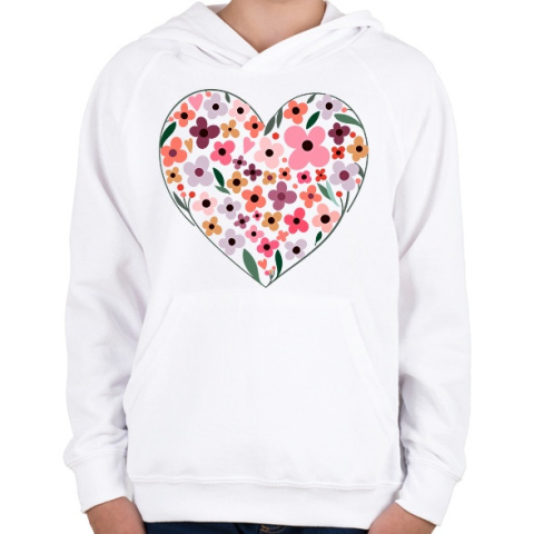 1 kép PRINTFASHION Virágos szív - Gyerek kapucnis pulóver - Fehér