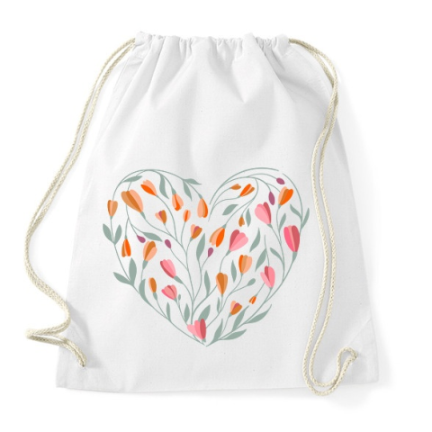 1 kép PRINTFASHION Virágos szív - Sportzsák, Tornazsák - Fehér