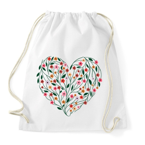 1 kép PRINTFASHION Virágos szív - Sportzsák, Tornazsák - Fehér