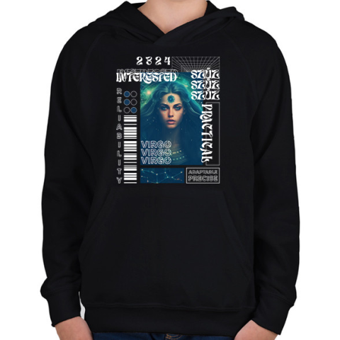 1 kép PRINTFASHION Virgo - Streetwear style - Gyerek kapucnis pulóver - Fekete